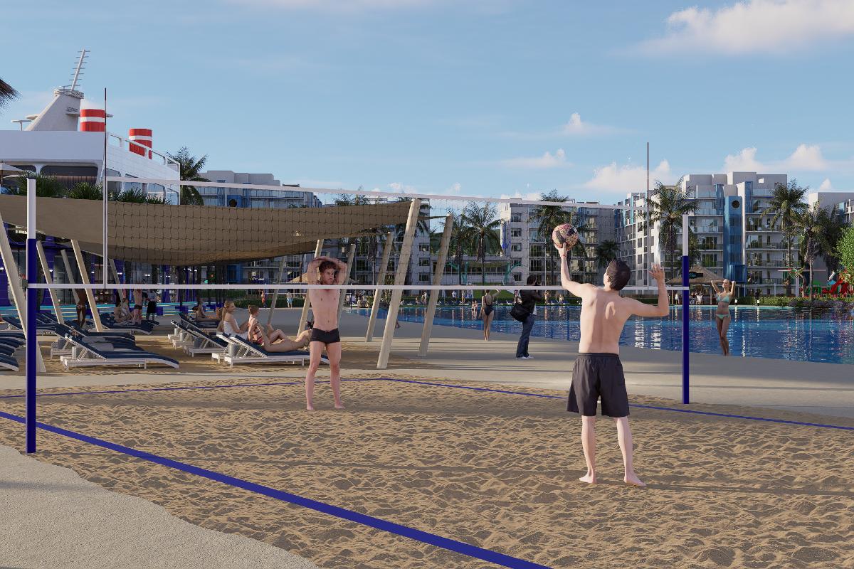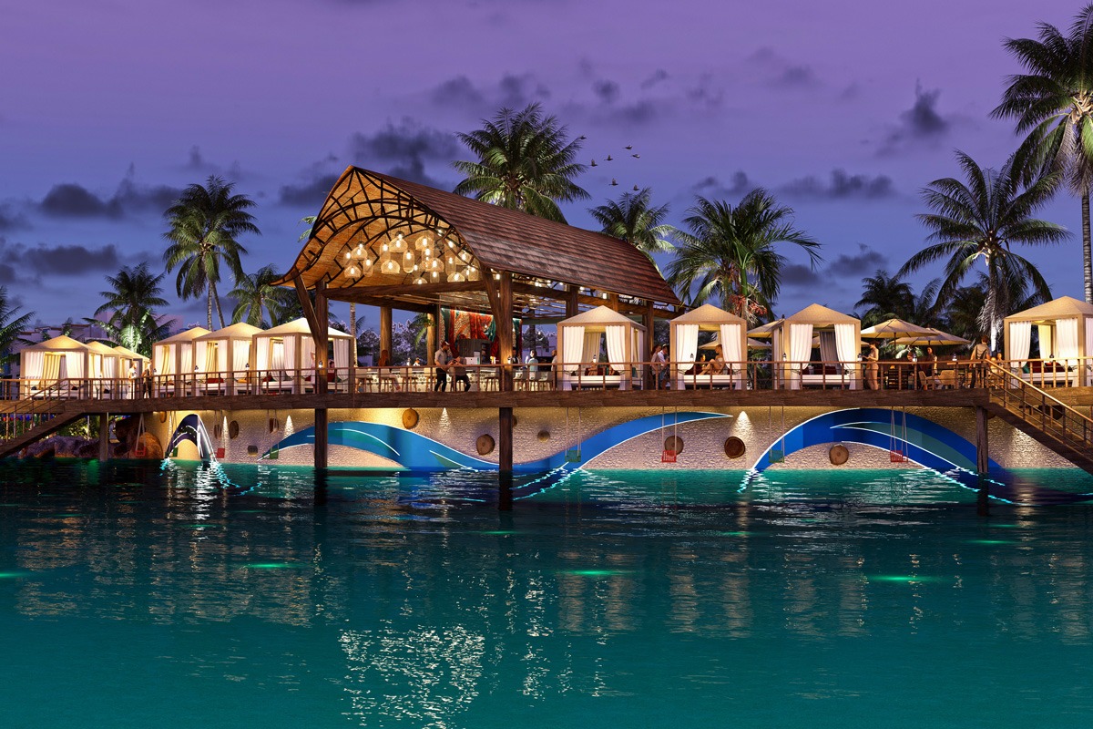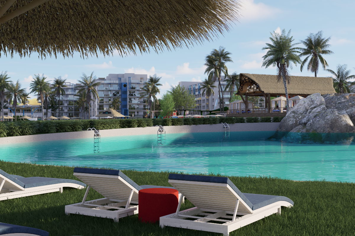 La playa artificial de Cruise On Land Punta Cana ofrece a los huéspedes la oportunidad de disfrutar de la esencia del Caribe sin salir del complejo. Con una amplia laguna de aguas cristalinas, arena blanca y zonas de descanso equipadas con sombrillas y tumbonas, este espacio combina la belleza natural con la comodidad de un entorno diseñado para el disfrute. Aquí se puede tomar el sol, nadar en aguas tranquilas o simplemente relajarse con la vista del escenario central y sus espectáculos, garantizando momentos de diversión y relajación en un ambiente único y seguro.